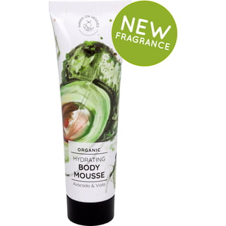 A mousse corporal orgânica é composta por uma mistura de óleo de abacate, manteiga de karité e extrato de viola que beneficiam a pele da seguinte forma: